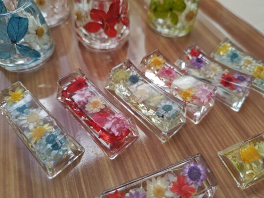 ▷お手入れいらずで飾りやすいハーバリウムやお花を使ったレジン雑貨など、プレゼントにもぴったりな作品をお持ちします。