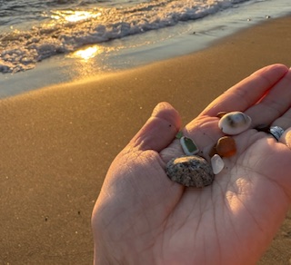 ▷貝殻やシーグラスを使って製作しています。