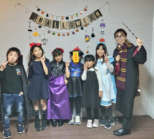 生徒さんたちは仮装やお菓子交換を楽しみます。