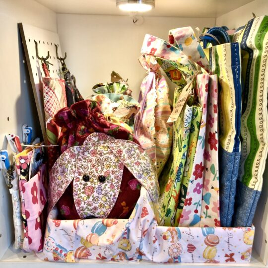 お気に入りの生地や糸を前に、「これで何を作ろうか?」と思いめぐらせている時間が至福のひと時です。